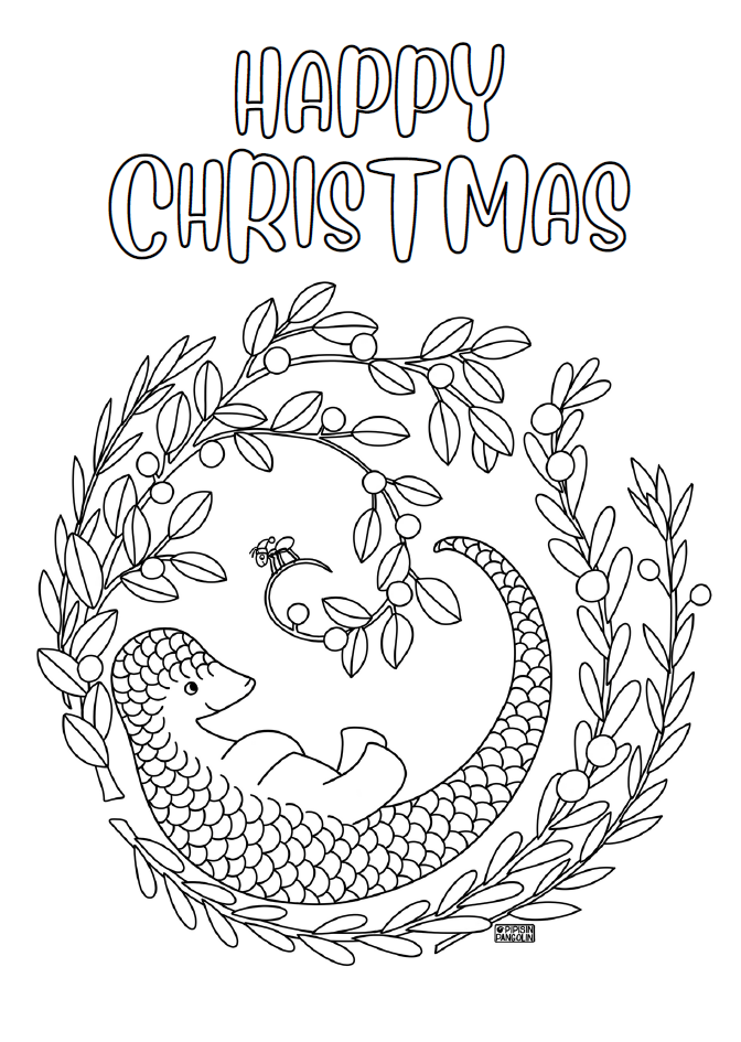 Wishing everyone a Happy Christmas with my annual colouring page to help raise awareness of pangolins.